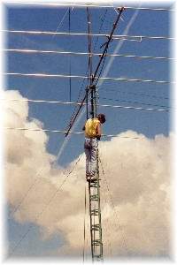 | Mise en place des antennes sur le pylône. | |